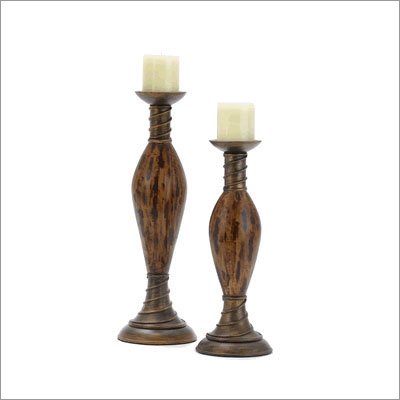 Fangio This pair of hand cast candle holders features smooth wood inlays. The pair is 16" and 20" in height. Features: -16" and 20" in height -Includes 2 3" wax candles -Hand cast with smooth wood inlays About Fangio Lighting Fangio Lighting has been producing lighting for the furniture, contract, and hospitality industry for the past twenty years. They manufacture their lamps and lampshades to meet the highest standards of quality and durability for commercial applications. All of Fangio's products are U.L. approved and tested in their facility. All their lamps are assembled in the U.S.A., in their factory under their own quality control standards and specifications. 8278