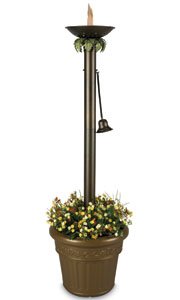 Add a touch of the Mediterranean with the Citronella Patio Torch. Far from a standard tiki torch this lamp features a sturdy base and is fueled by lamp or citronella to ward off insects. Aluminum construction makes this lamp durable while the powder-coated hammered bronze finish makes it a pleasing way to provide a relaxing atmosphere. A candelabra wick system provides ample flame and the fiberglass wicks last a lifetime. The oil reservoir holds 20 ounces of fuel offering over five hours of flickering ambience. Includes attached snuffer cap.